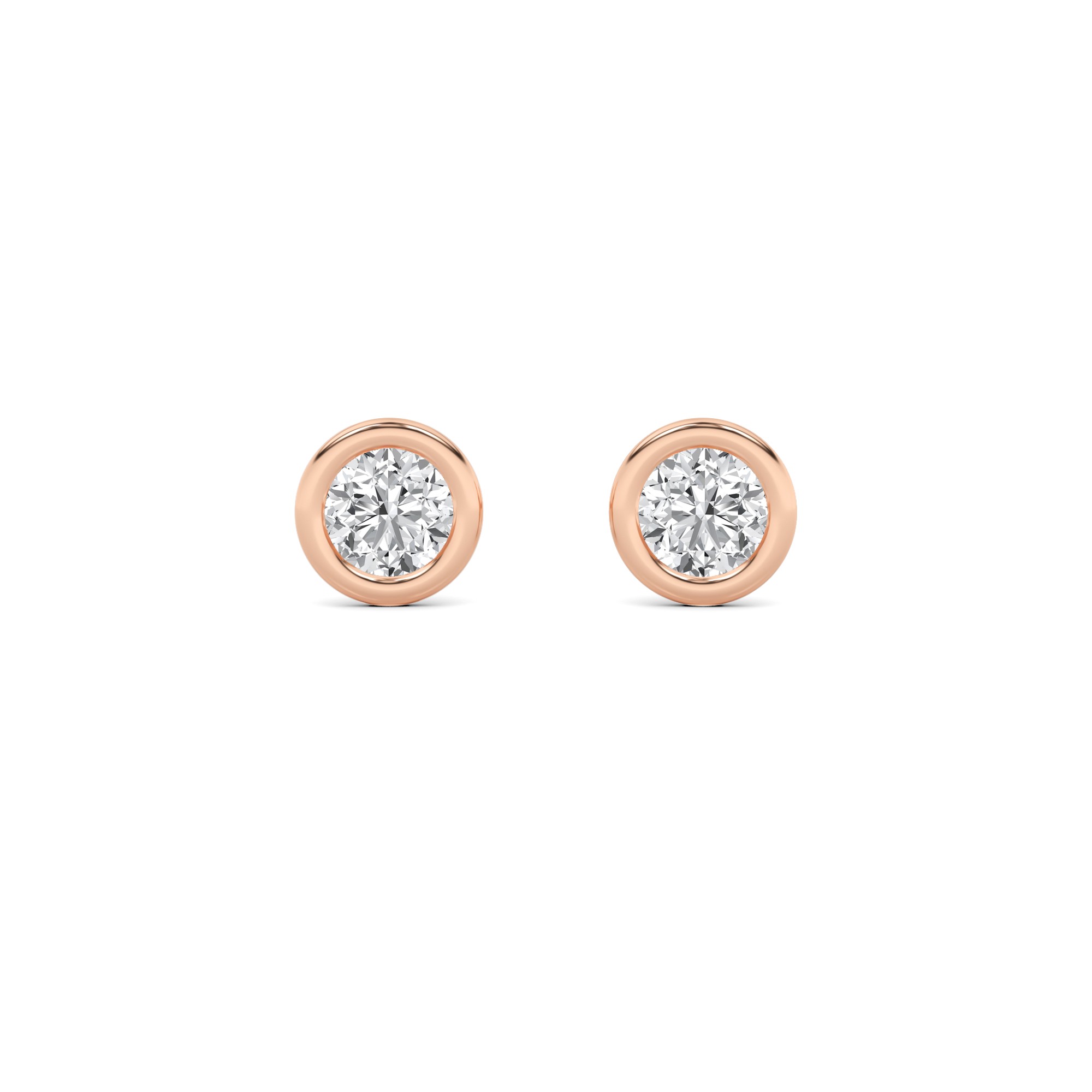 Flat Back Bezel Set Round Diamond Stud Earring in 9K Rose Gold Push Back