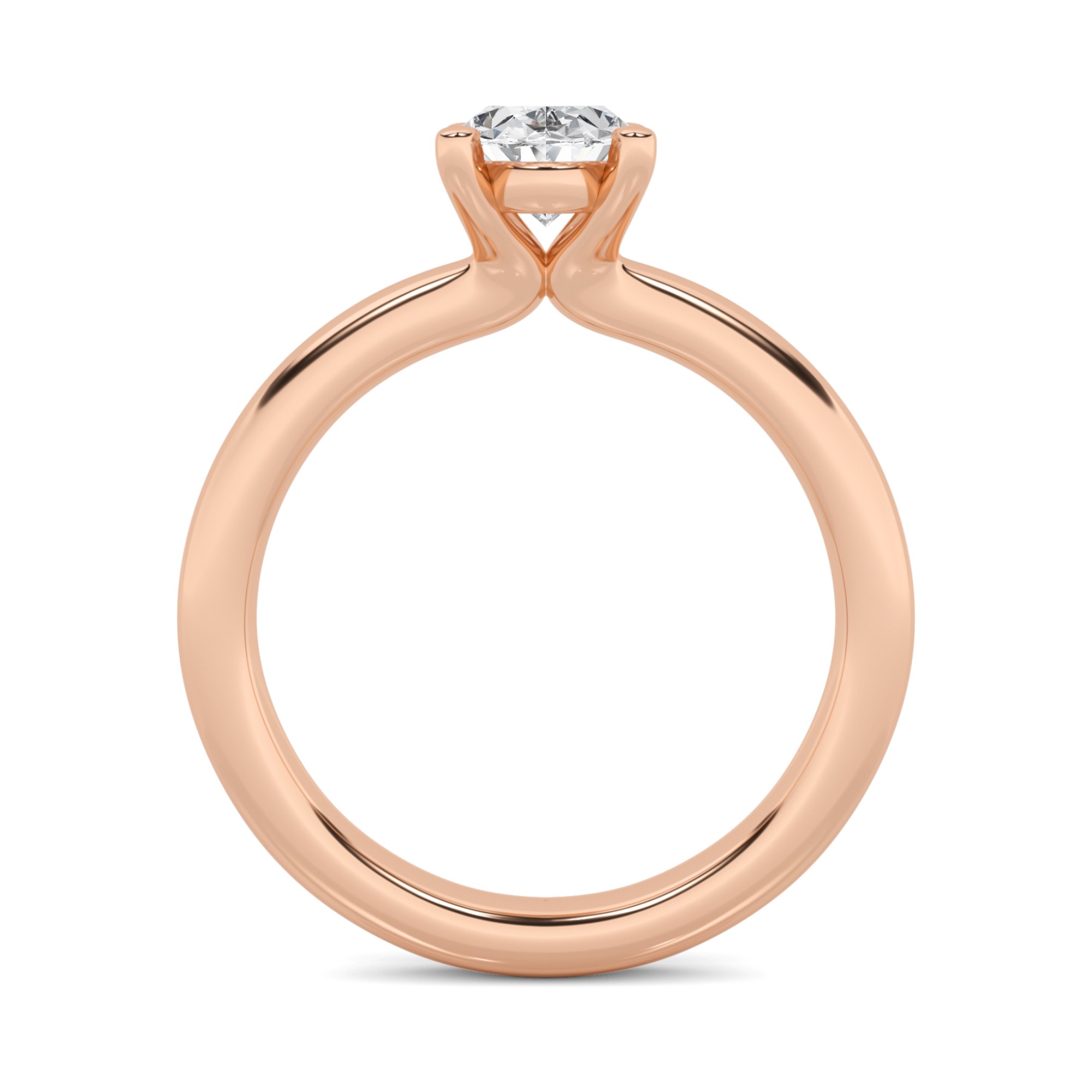 Rounded Shank Modern 4 Claw Round Solitaire Diamond Engagement Ring in 9K Rose Gold
